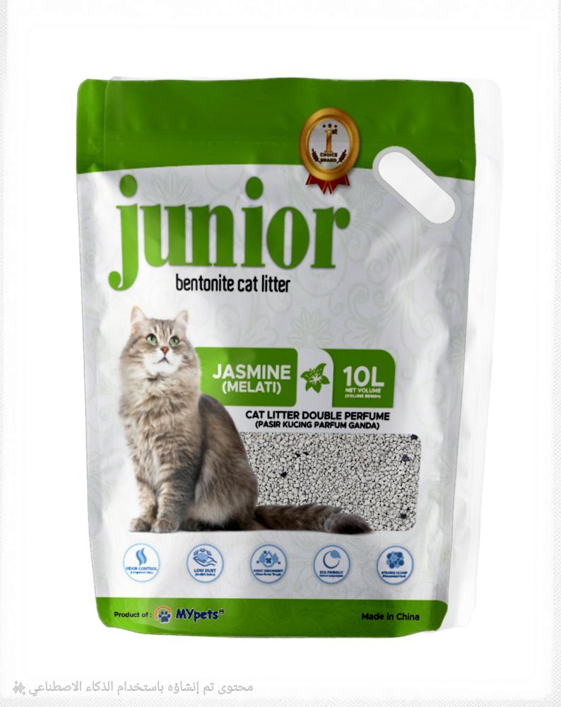 رمل للقطط بنتونيت جونيور برائحة الياسمين 10 لتر