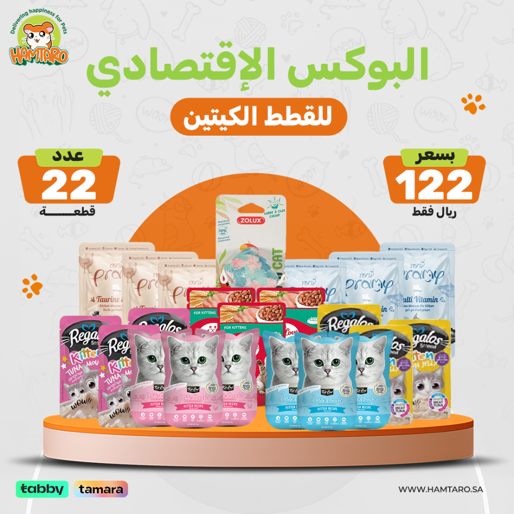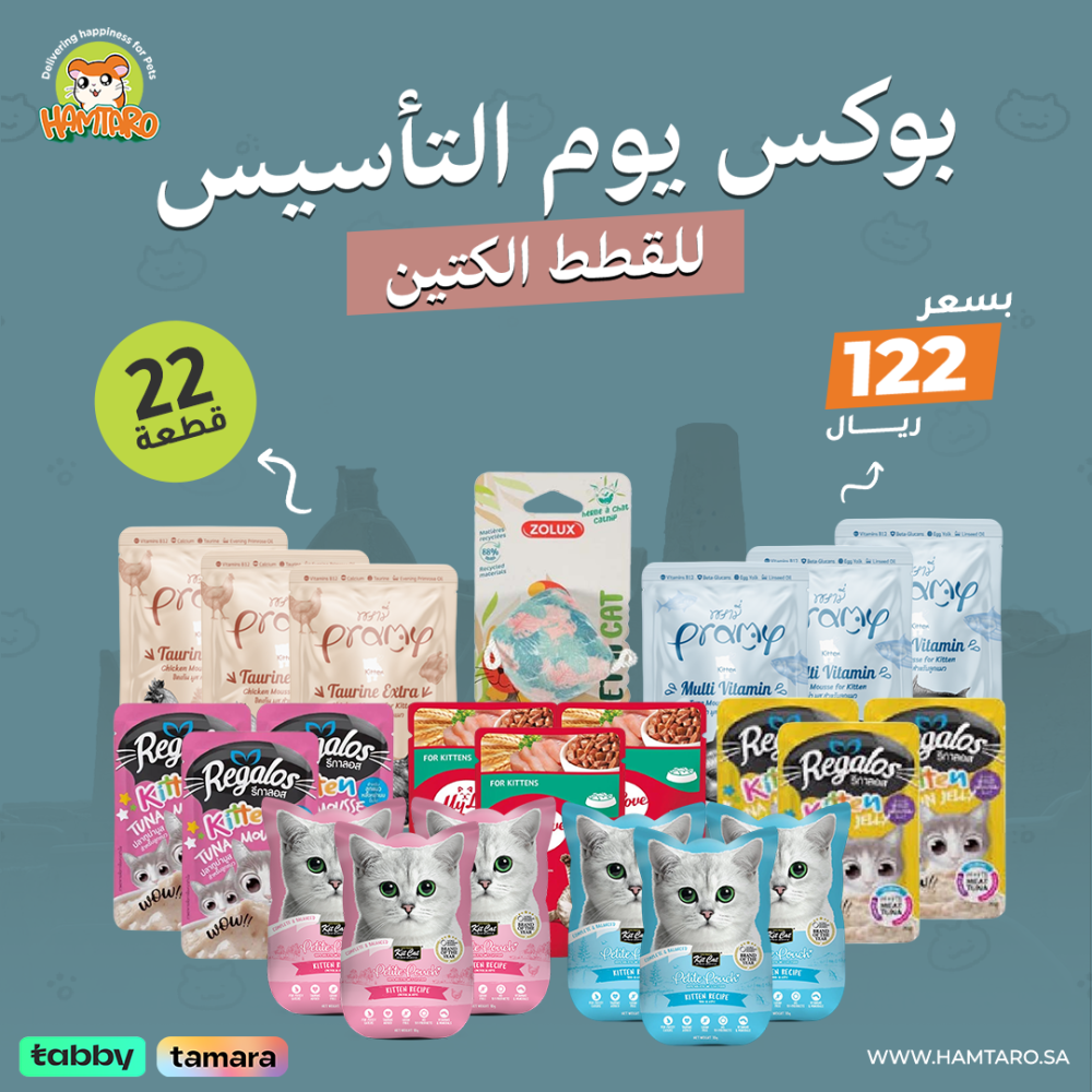 متوفر الآن لفترة محدودة لا تفوت فرصة الحصول على بوكس يوم التأسيس الاقتصادي للكتين، بسعر خاص فقط من متجر همتارو لمستلزمات القطط، اجعل هذا اليوم مناسبة استثنائية لك و لقطتك، وامنحها تغذية متكاملة تعكس حبك واهتمامك بها، اطلبه الآن واستمتع بأفضل العروض.