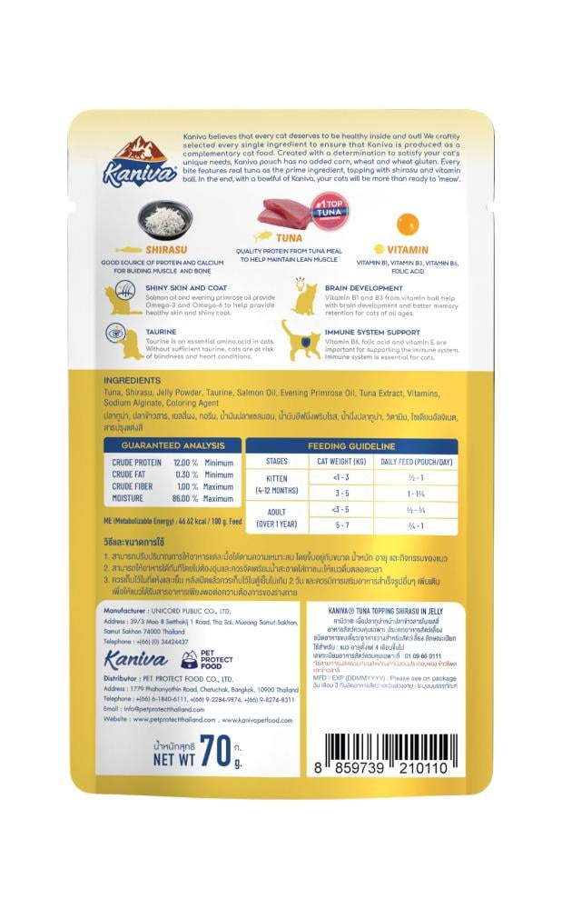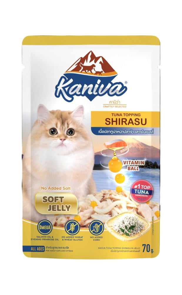 امنح قطك وجبة لذيذة وصحية مع Kaniva cat food بنكهة كانيفا تونة و شيراسو في جيلي طري. تم إعداد هذا المنتج ليناسب احتياجات كانيفا للقطط الغذائية، حيث يحتوي على تونة طازجة عالية الجودة مع شيراسو شهي، مدعّم بالتورين وزيوت صحية لتعزيز صحة القلب، الجلد والفرو.