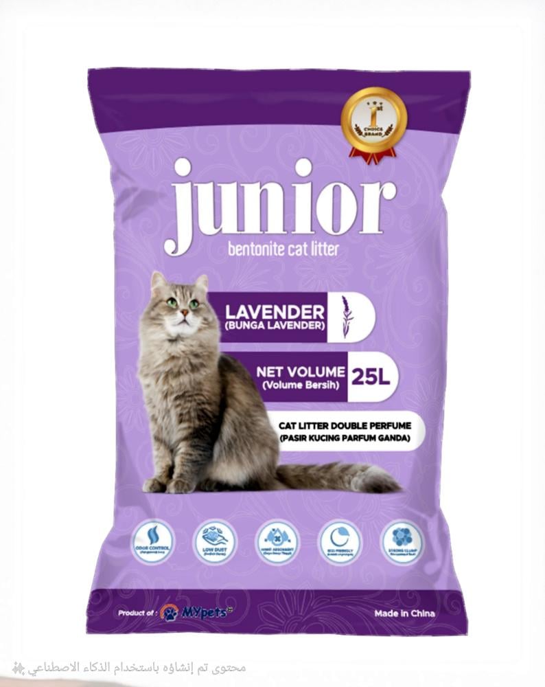 امنح قطتك بيئة نظيفة ورائحة زهرية تدوم طويلاً مع رمل جونيور معطر برائحة اللافندر، المنتج الذي يجمع بين النعومة الفائقة والتقنية الحديثة في التكتل والامتصاص.