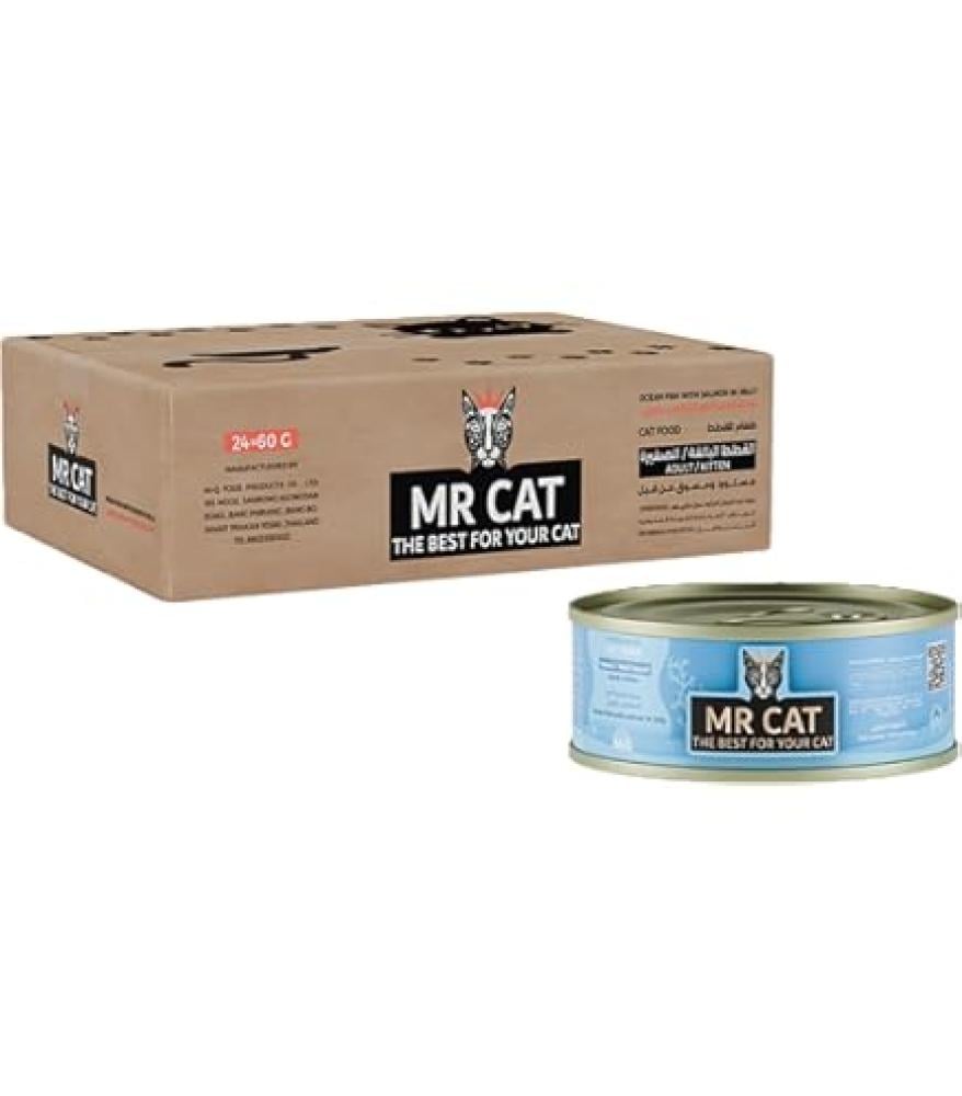 دع قطتك تستمتع بأفضل ما في المحيط مع مستر كات سمك المحيط مع سمك الرنجة بالجيلي، م تصميم هذا الطعام الرطب ليكون الخيار المثالي لتوفير احتياجات قطتك الغذائية اليومية، مع تركيبة غنية من الأسماك الطازجة المستخلصة من المحيط، التي تعزز صحتها العامة وتغذيها بالطاقة اللازمة.