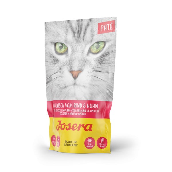 يمكنك الآن الحصول على جوسيرا طعام مهروس لحم ودجاج لضمان تقديم وجبة طازجة رطبة غنية بجميع العناصر الغذائية المهمة لنمو القط بشكل سليم .