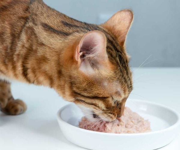 إذا كنت تقدم الأكل الرطب، يتم تقليل كمية الجاف إلى النصف واستبدالها بالعلب أو الأكياس الرطبة.