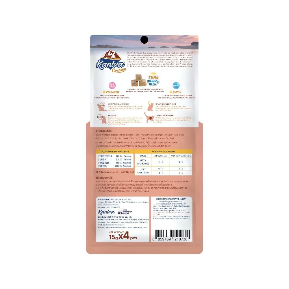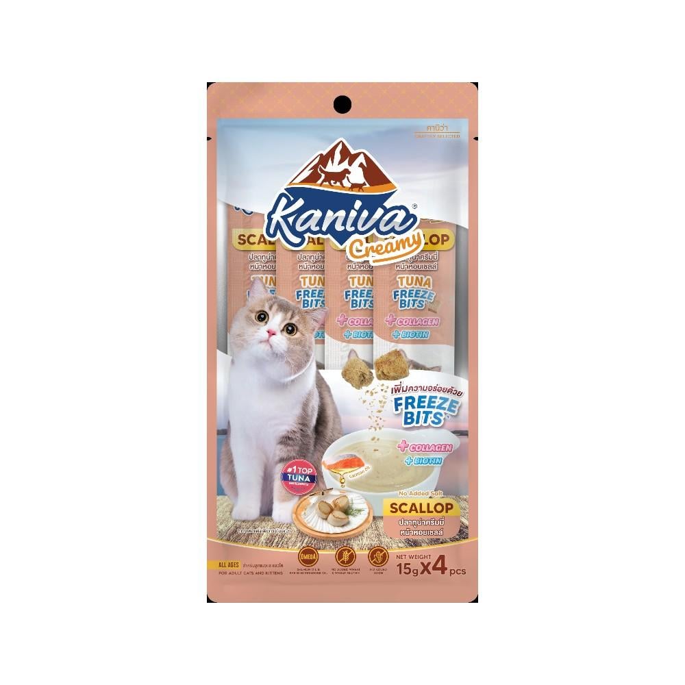- كانيفا مكافأة كريمية للقطط مصنوعة من لحوم حقيقية كمكون رئيسي لضمان الطعم الطبيعي والقيمة الغذائية.