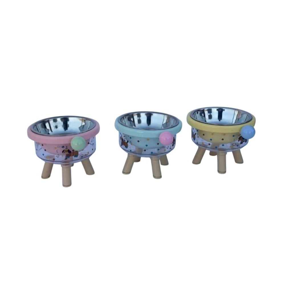- التصميم: طبق قطط مرتفع بقاعدة ثابتة.