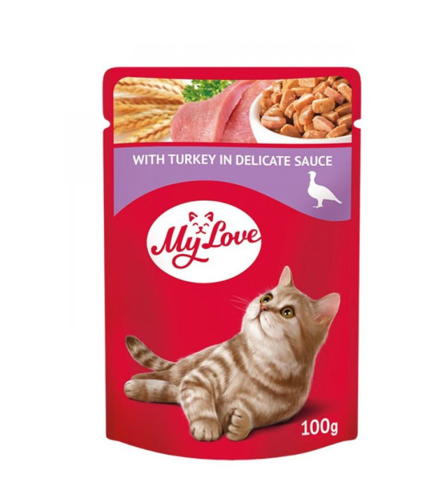 ظرف طعام رطب للقطط البالغه ماي لاف بالديك الرومي