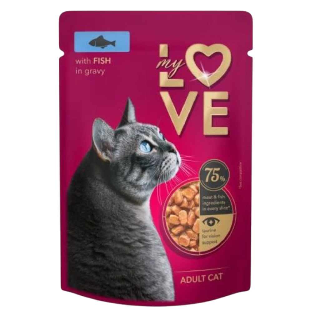 اطلب الآن ظرف ماي لوف سمك في المرق 85 جرام للقطط البالغة من همتارو وتمتع بمنتج مغذي، شهية وسهل التقديم، مع ضمان جودة عالية وخدمة توصيل سريعة وآمنة.