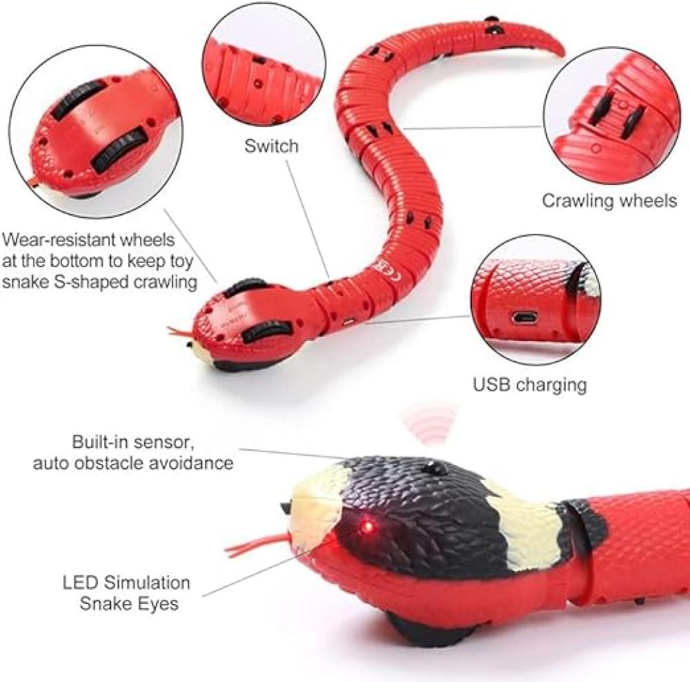 • 【وظيفة المستشعر】قم بتشغيل المفتاح، وسوف يزحف الساكي على الأرض بسرعة ومرونة. يوجد مستشعر الأشعة تحت الحمراء على رأس الثعبان. عندما تصل إليه، سيعود الثعبان على الفور.