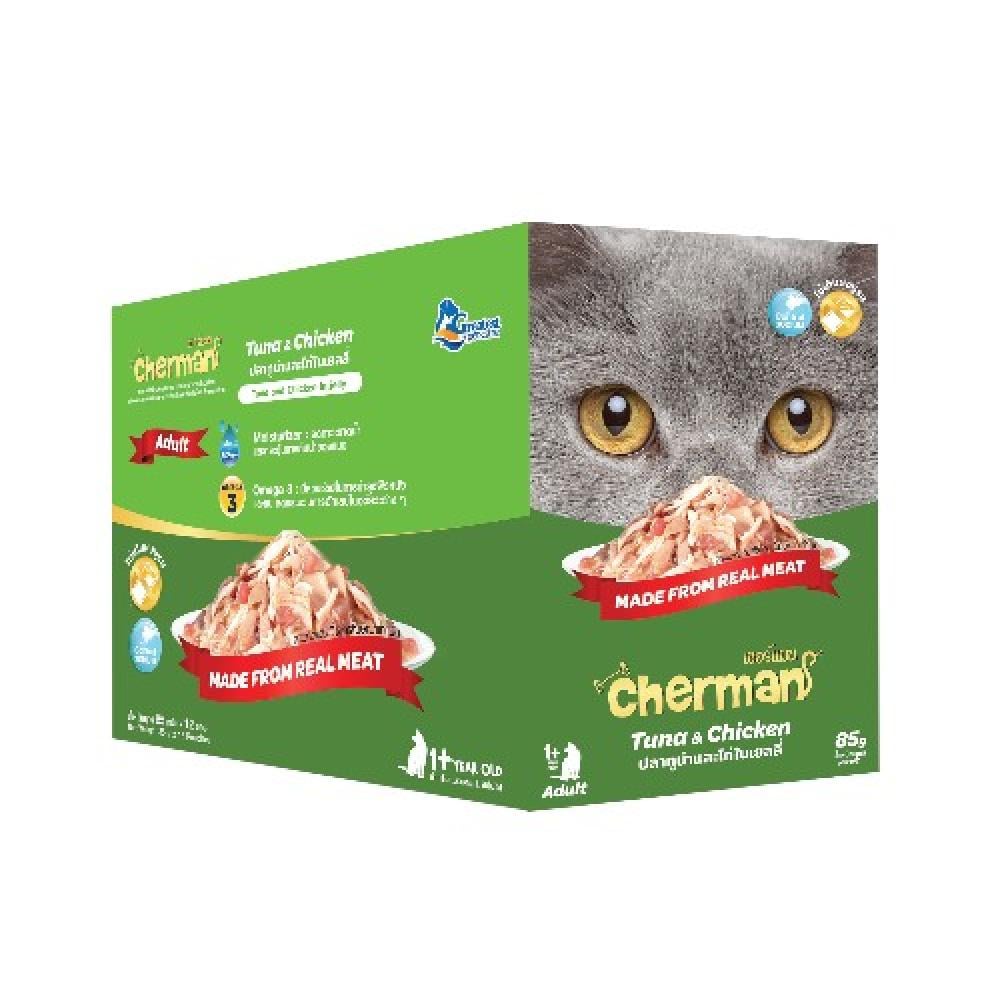 خصائص اكل قطط صحي يقدمها كارتون شيرمان تونة ودجاج: