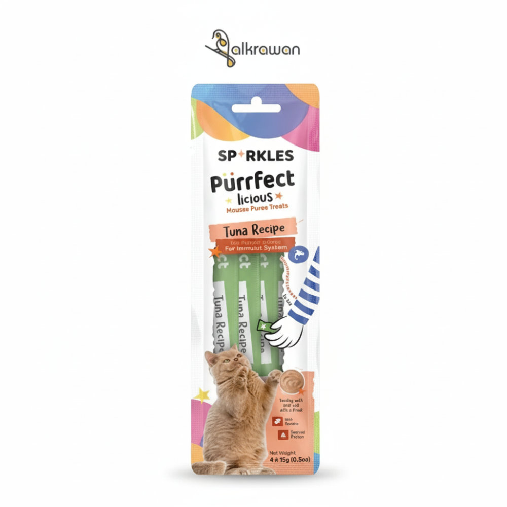 أفضل طريقة لتدليل قطتك وفي نفس الوقت العناية بصحتها، هي سباركليز مكافأة للقطط بالتونة والسلمون، بتركيبة مبتكرة تجمع بين الطعم الشهي الذي تعشقه القطط والفوائد الصحية التي يحتاجها جهازها الهضمي
