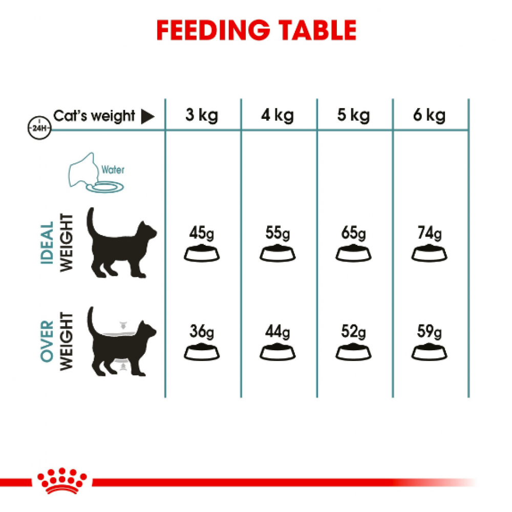 لضمان أفضل نتيجة من رويال كانين هيربول طعام جاف للقطط، يُرجى اتباع تعليمات التغذية التالية حسب وزن قطتك ومستوى نشاطها: