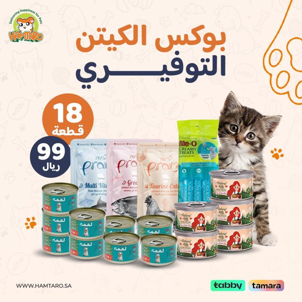 بوكس الكيتن الاقتصادي بداية صحية ولذيذة لحياة قطتك الصغيرة، وفري على نفسك الحيرة والتكاليف العالية مع بوكس الكيتن التوفيري المتوفر الآن على متجر همتارو، اختاري الأفضل لنمو قطتك مع يوكس طعام القطط الصغيرة، واجعلي كل وجبة مليئة بالحب، العناية، والنكهة التي لا تقاوم.