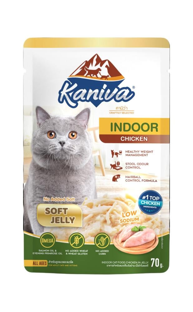 If your cat spends most of its time indoors and needs a balanced diet to support its daily health and activity, Kaniva Indoor Chicken in Jelly Cat Food is the perfect choice. We offer a specially crafted formula that combines delicious taste with essential health benefits in every pouch.